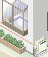 屋外据置型とは、主に一戸建て住宅で、地面やブロックに置かれているタイプの給湯器です。